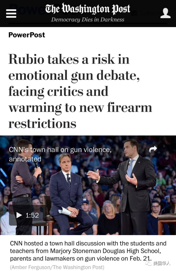 对话的气氛不可谓不紧张,问话方的语言亦是尖锐、直接。也许正是预料到这将是一次艰难的对话,不少官员选择了逃避,收到邀请的川普总统和佛州州长Rick Scott(共和党)都拒绝出席。佛罗里达州的共和党参议员马可·卢比奥(Marco Rubio)表现出诚意和勇气,到场参与讨论。