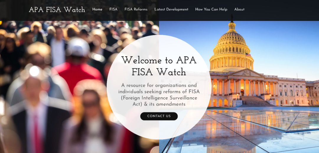“APA FISA监察”(APA FISA Watch)网页截屏。“APA FISA监察”是一个呼吁FISA改革的组织。