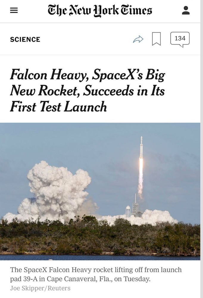 也是运用同样模型涡轮增压的猎鹰9号火箭已经在太空中运载多年,证明技术足够成熟。这标志着航天飞行中的一个重要里程碑。这一成功使得SpaceX有了发展更大火箭的动力,这有助于实现马斯克先生派人到火星的梦想。为此,他已经在规划下一代更强更大的火箭:BFR(Big Falcon Heavy,大猎鹰),计划在2020年代发射。