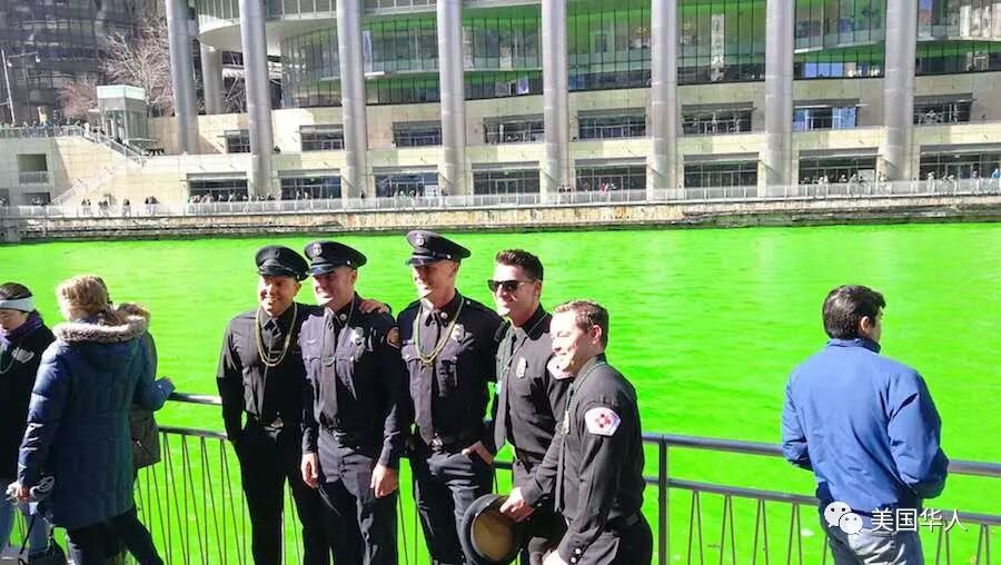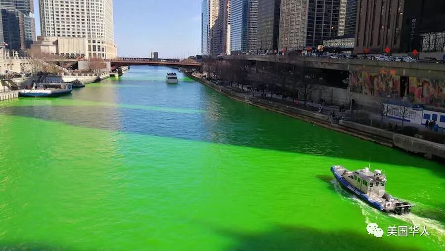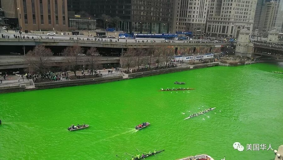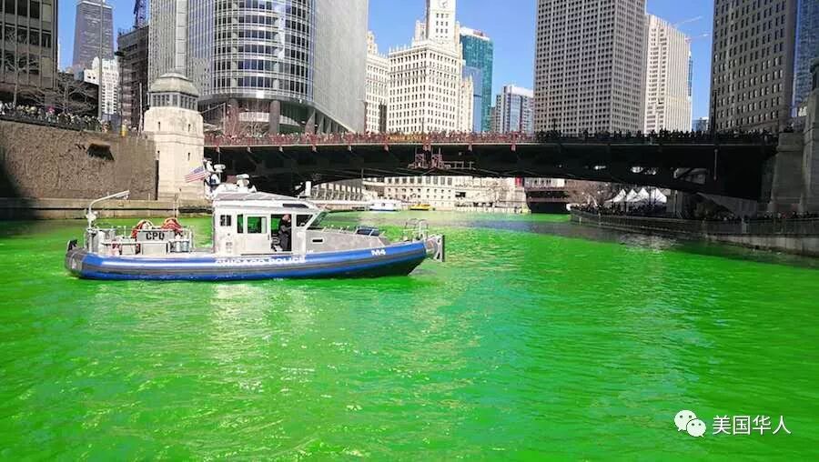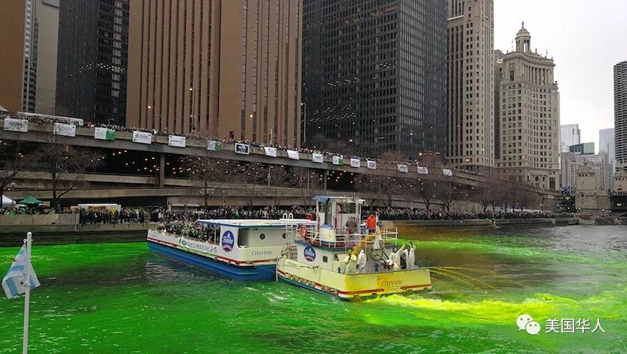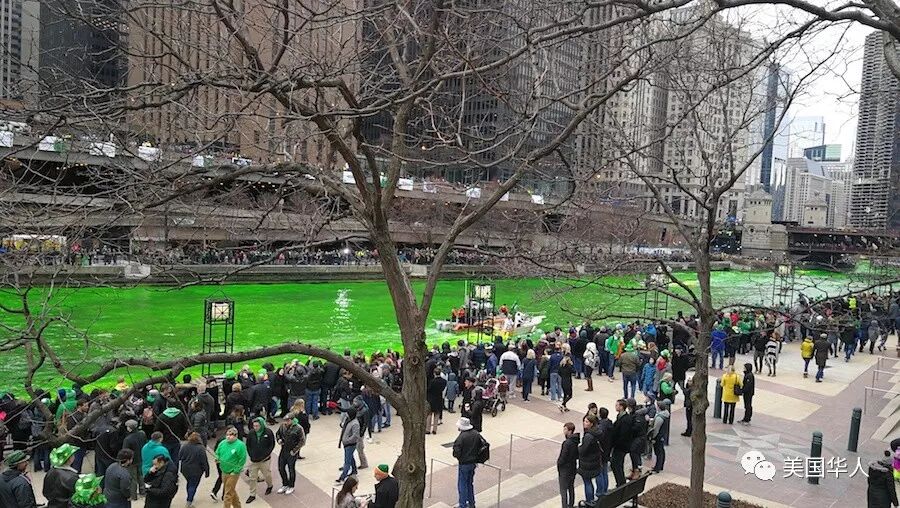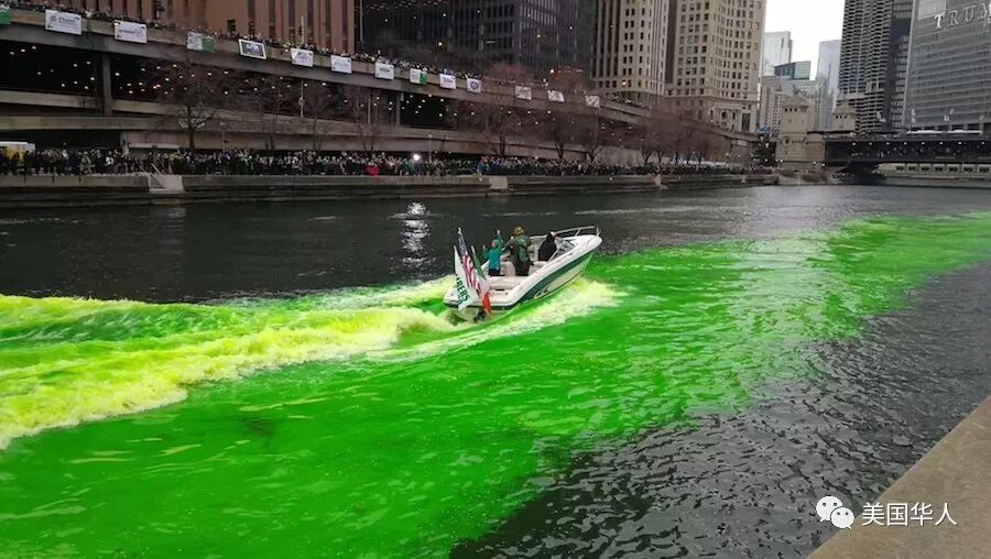 下面是网友三亩大叔给我们提供的今天芝加哥河染绿活动的现场照片: