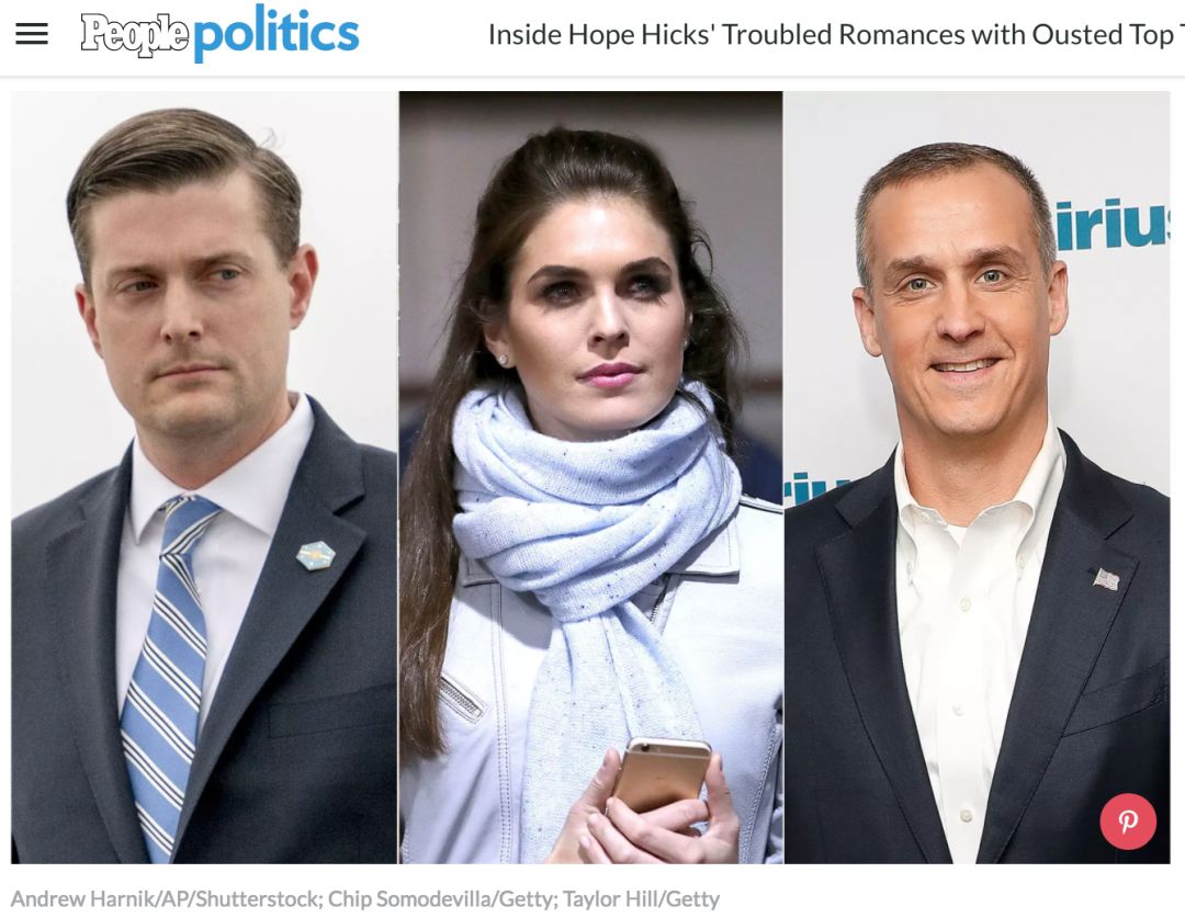 说到希克斯的私生活,图姐不得不提到,她交往的男友段位也很高。她曾经与特朗普竞选经理科里·莱万多夫斯基交往,而且这位竞选经理当时是位已婚男士。而她之后交往的男友,便是那位两次离婚,被两个前妻爆料家暴,并因此辞职的白宫幕僚秘书罗伯·波特。科里·莱万多夫斯基也被指控性骚扰和有暴力行为。