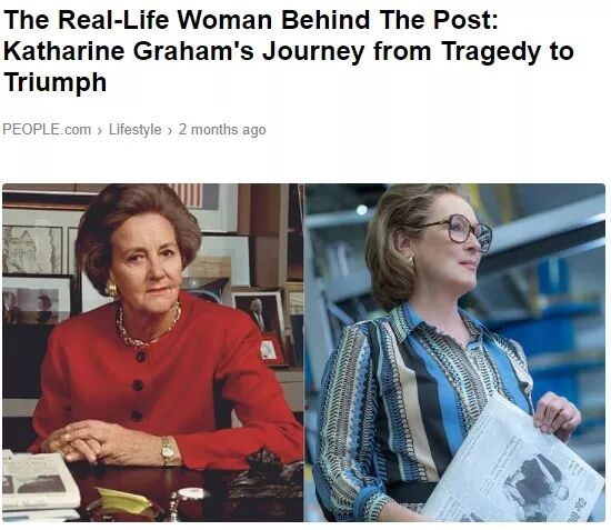 如果有人问你谁是美国史上最强悍的女强人?你的回答会是什么?美国总统可以说是地球上最有权力的人,有这样一位女性,她扳倒了美国总统,我们称她为最强悍的女强人好像并不为过。在个人生活上,她的经历也充满了传奇。他老公婚后出轨,本来内向、害羞的她居然奋起斗败小三、夺回产业,找小三的老公最后得躁郁症而举枪自尽。堪称女强人里楷模的她,就是《华盛顿邮报》前发行人 —— 凯瑟琳·格雷厄姆(Katharine Graham)。电影《华盛顿邮报》(The Post)讲述的就是她的真人真事。