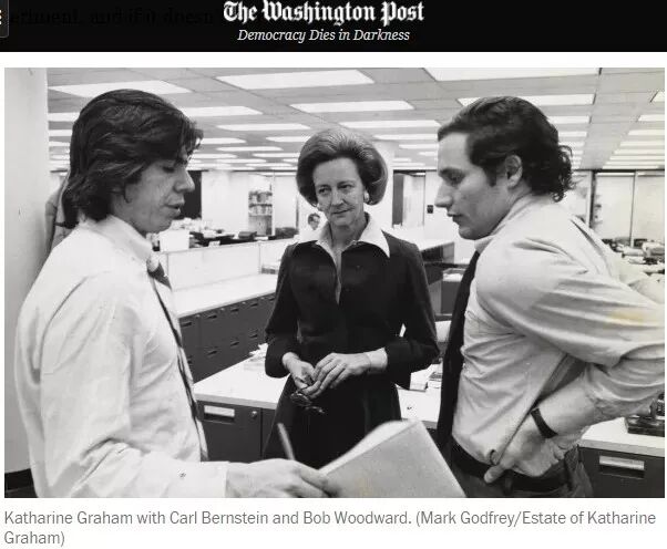 邮报记者鲍勃·伍德沃德和卡尔·伯恩斯坦得到来自“深喉”的匿名消息,揭开了白宫的丑闻。当时凯瑟琳也面临一个报与不报的抉择,也受到来自各个方面的压力。这次她更是顶住压力,大力支持伍德沃德和伯恩斯坦,对“水门事件”坚持不懈地调查,后来其他各大媒体都跟进穷追猛打。可以这样说:没有《华盛顿邮报》对“水门事件”调查和报道,就没有后来尼克松总统的下台。