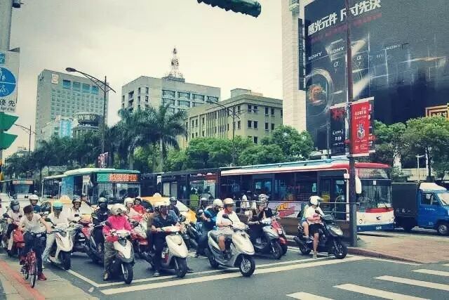 在台湾,摩托车(机车)数量相当大,每个城市,马路上都是在等红绿灯的机车,随处也都停满整整齐齐的机车,整齐到处女座都会拍手称赞。而且任何一个开机车或乘机车的人都带头盔,秩序井然。