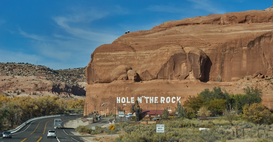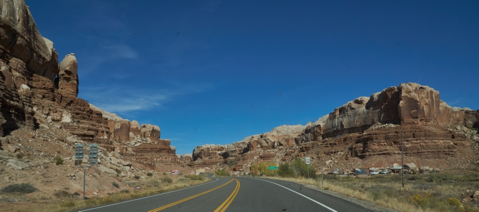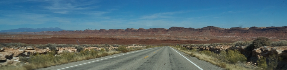 从大峡谷南缘到Moab,一般GPS导航通常选择路线是走外边的160号公路转191号北上,必须手动更改GPS路线,转走163公路其实并没有绕路。在电影阿甘正传里阿甘跑步的那个著名路段就在163公路,很多人都在那里马路中间跑步留影向阿甘致敬,当然我们也不会例外