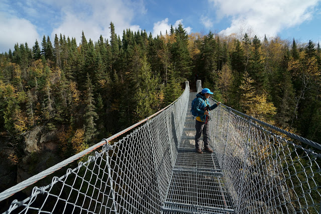 按照Pukaskwa国家公园的小册子,如果没有时间去走Coastal Hiking Trail,Mdaabii Miikna是一个退而求其次的不错选择,步道往返不到20公里但是公园建议3天的行程2个晚上野外宿营,我们觉得不需要用那么长的时间,因为只有大约4公里是靠近湖边走,大部分路段都是正常的山路,应该不会太难,所以最后的决定是一天走完全程外加White River suspension Bridge白河吊桥,去吊桥的路大部分是重合的,只需额外再走三到四公里而已。