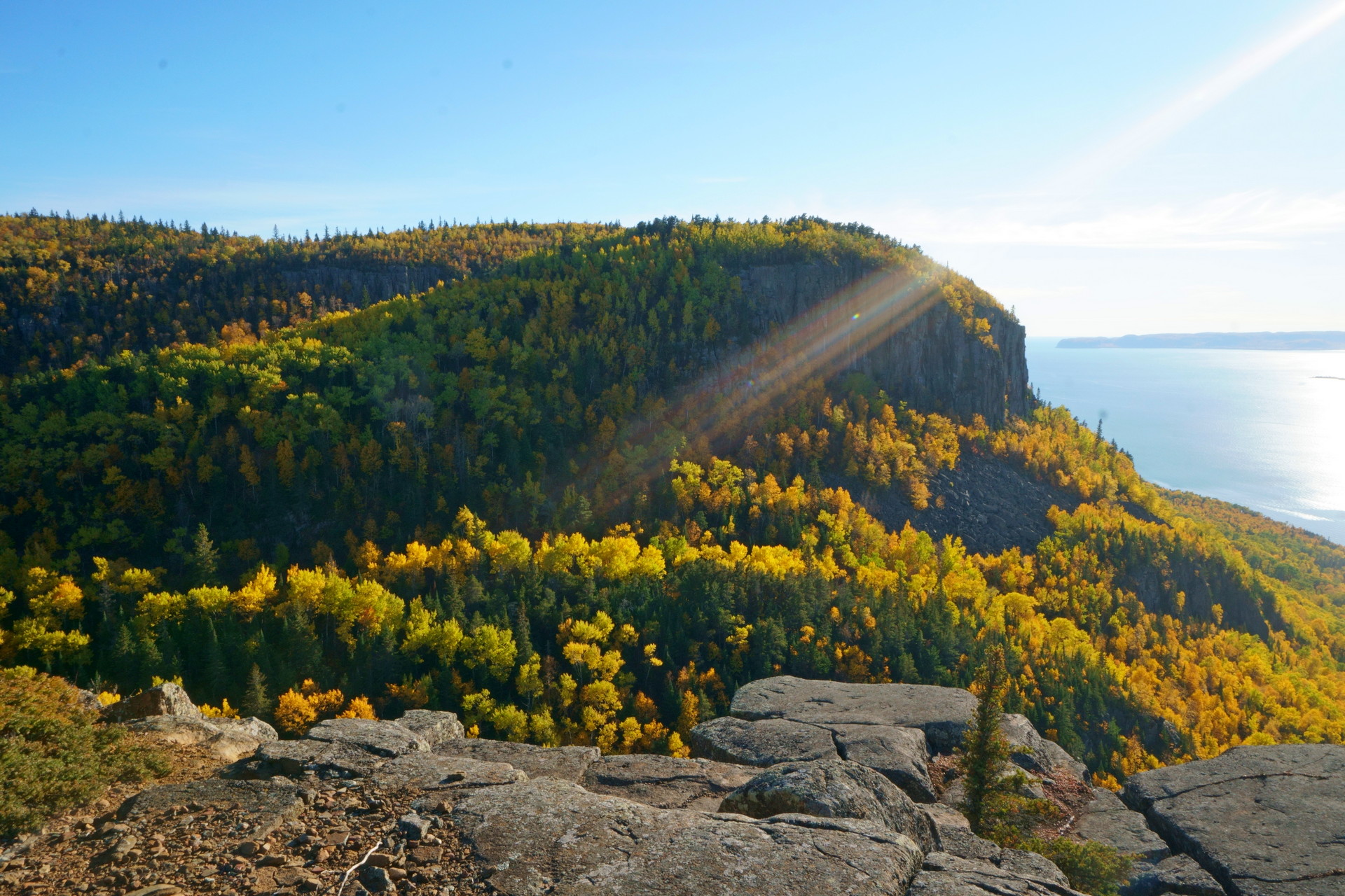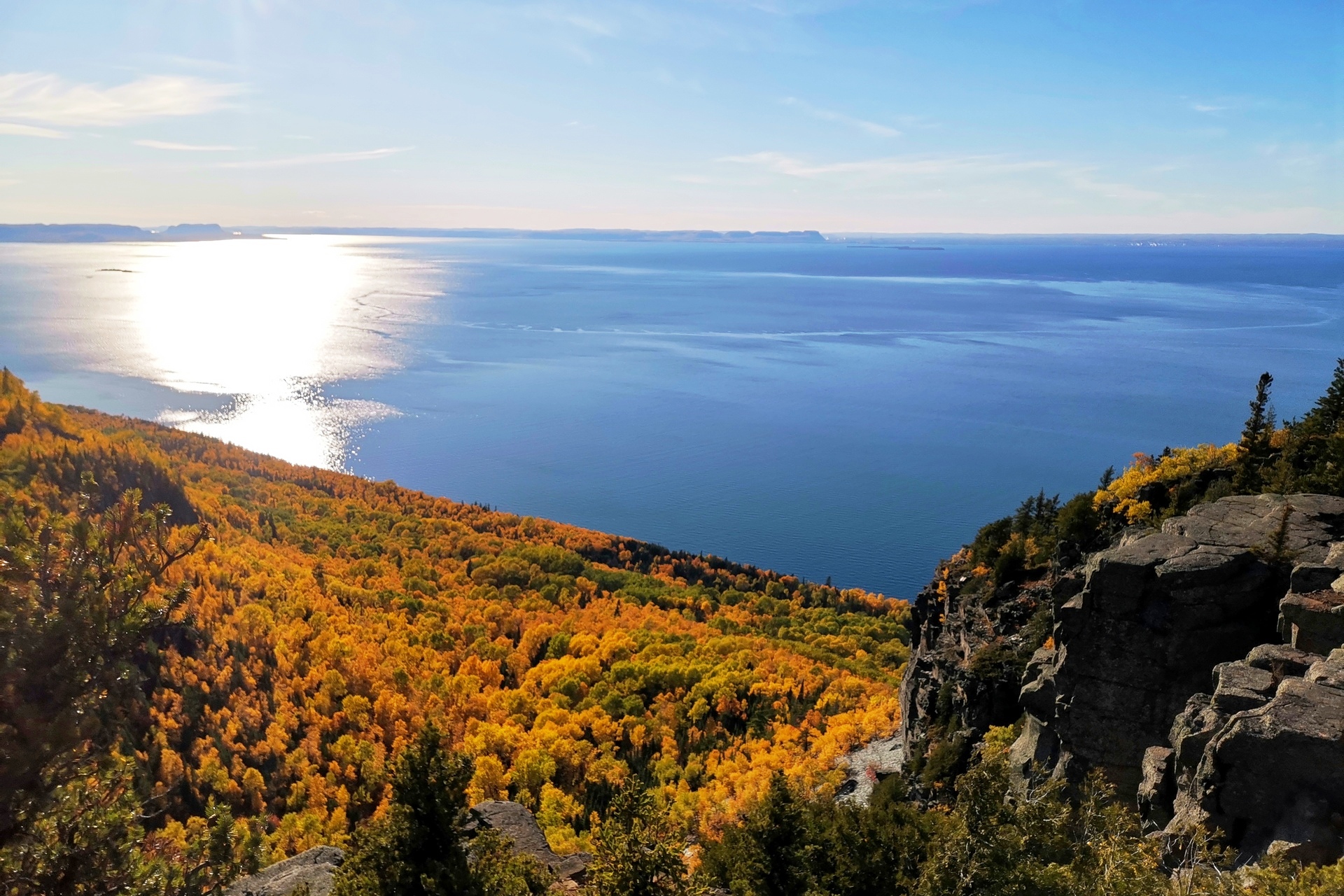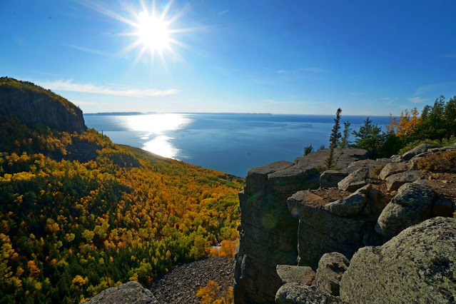 今天是我们这次Thunder Bay秋游的第六天,我们要去Sleeping Giant省立公园里面的巨人之首步道Head Trail。 安大略省的Sleeping Giant公园和Tunder Bay隔湖相望,看着不远,但是车程不近,80公里大约1个小时,公园因为山形酷似一位安静躺着的巨人而得名。