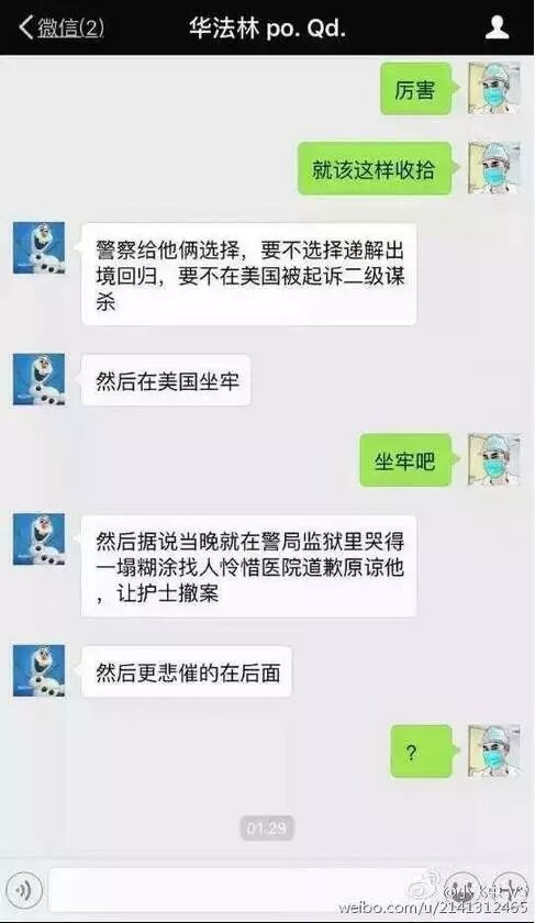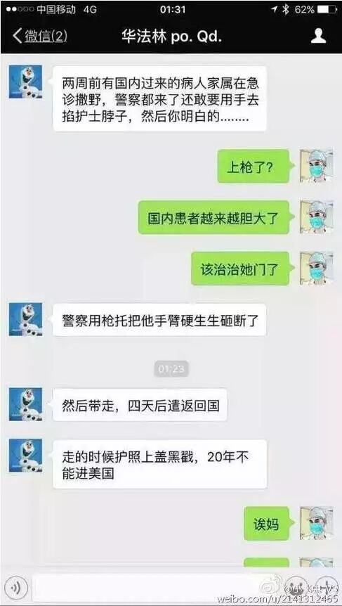 网友@小飞虫_V5 在微博上分享了一起发生在美帝的中国医闹: