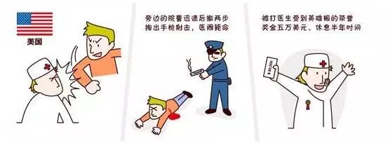 而在美国,医患之间一旦发生暴力冲突,医院便会报警。警察到达现场后,对闹事者进行劝离。如果闹事者不服从,立刻会被警察逮捕。