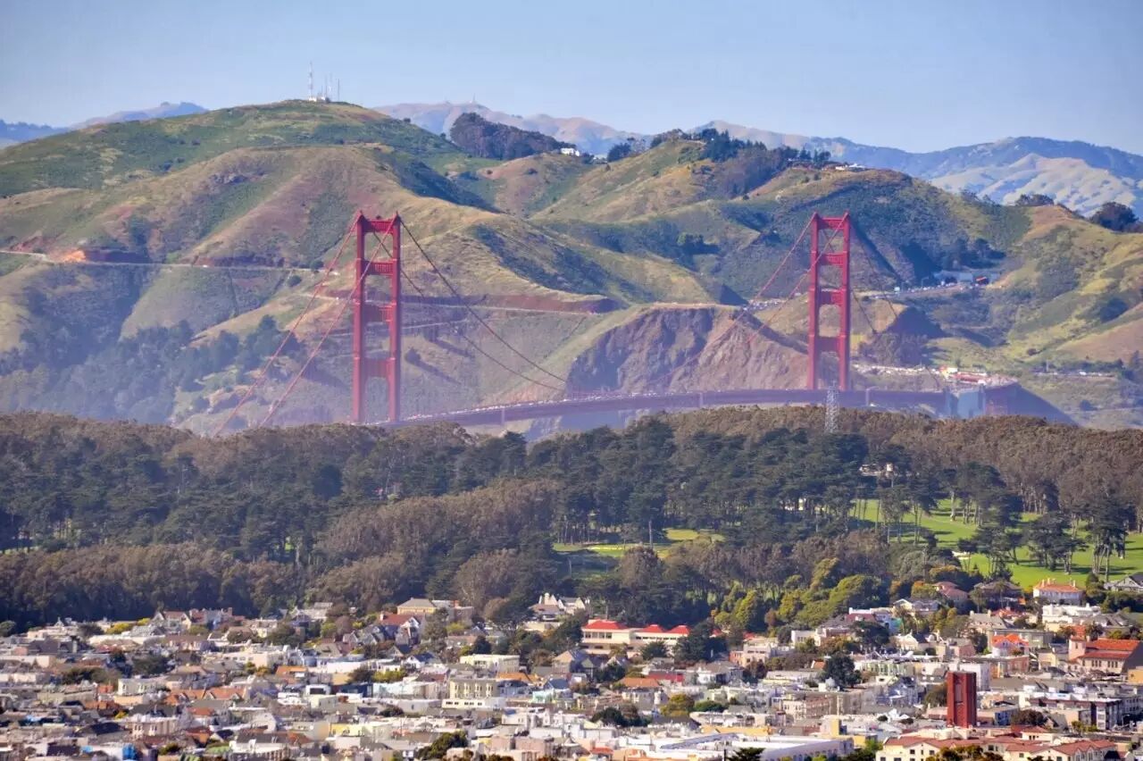 双子峰是旧金山城里一处高地,既可以饱览城市建筑群,又可以遥望金门桥,只是那么远拍出来的实在没法称为大桥...