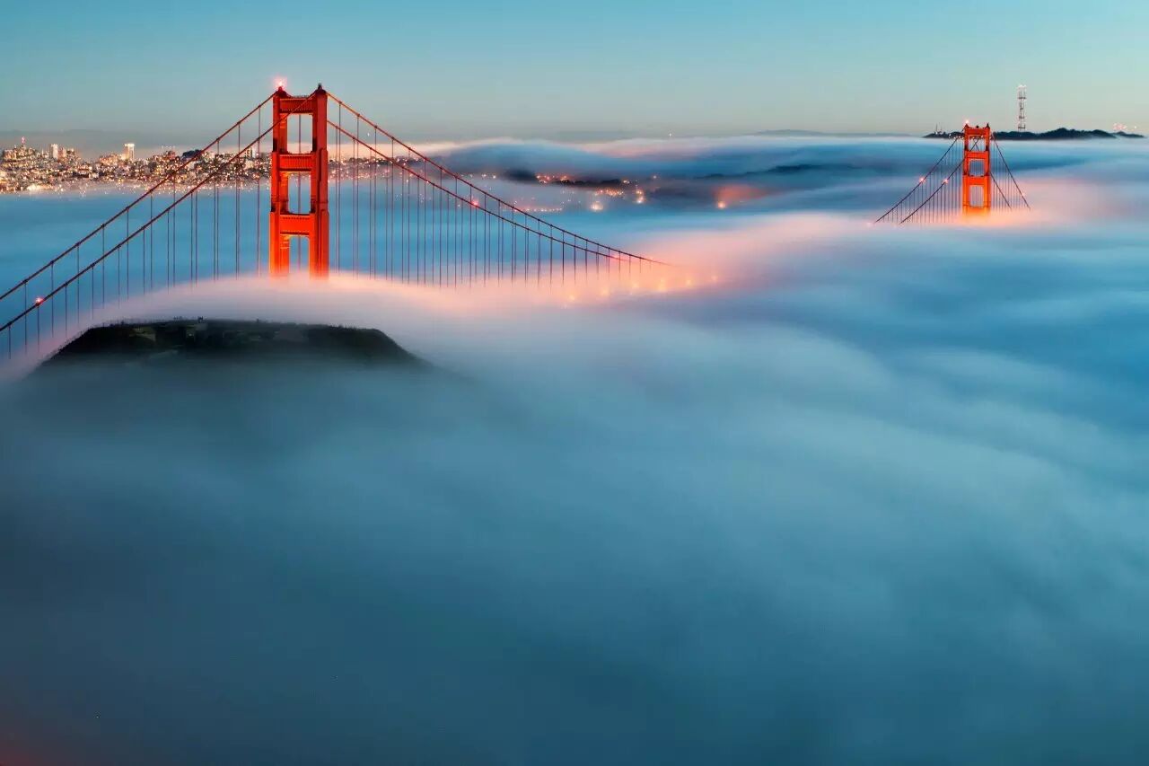 吁...这下总算是全方位无死角了吧?慢着,咱们还得看看老天爷的脸色,别忘了旧金山最让人魂牵梦绕的景——雾锁金门!虽说旧金山常年云雾缭绕,但是小猴去了几次怎么就是没遇上呢...