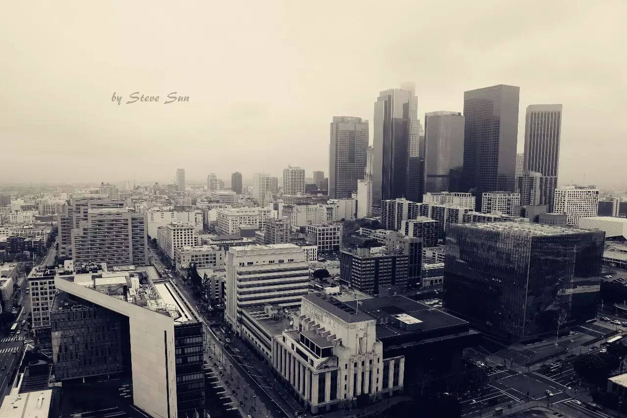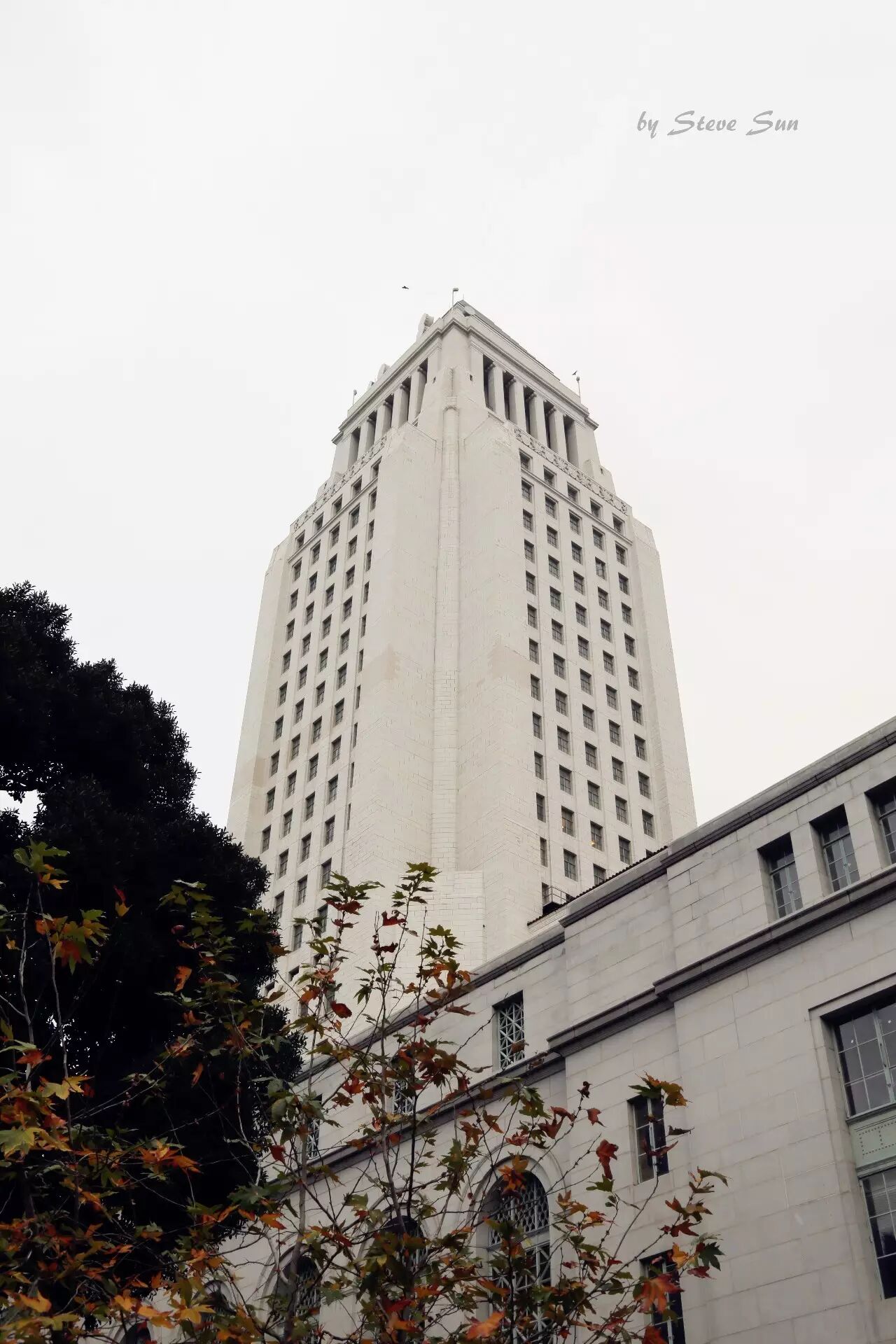 赶去洛杉矶的路上天越来越阴,雨最终还是不期而遇。在市政厅关门之前准时赶到,上到观景台去看了看烟雨天使城。