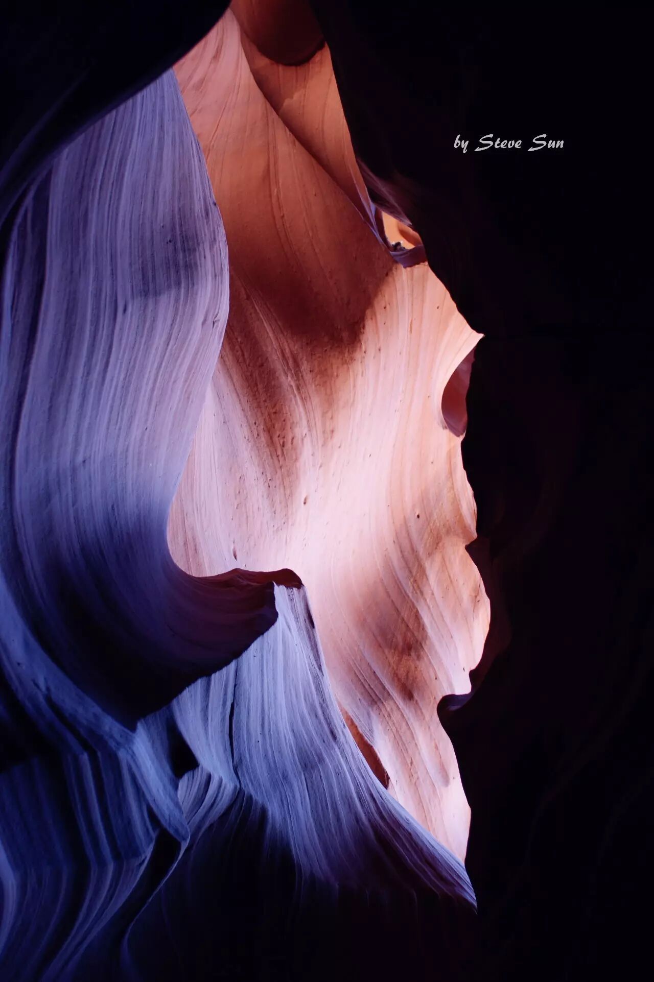 至于拍摄下羚羊谷的最佳时间,最好的可能还是正午前后,这个时候的光线最为充足。但是小猴更加喜欢避开正午,看看下面的照片,当阳光偏斜的时候,在一些特定位置岩壁两侧会呈现出不同的色彩。季节上,因为不需要等待光柱,所以一年四季都可以考虑,但是仍以春末到秋初为最佳。