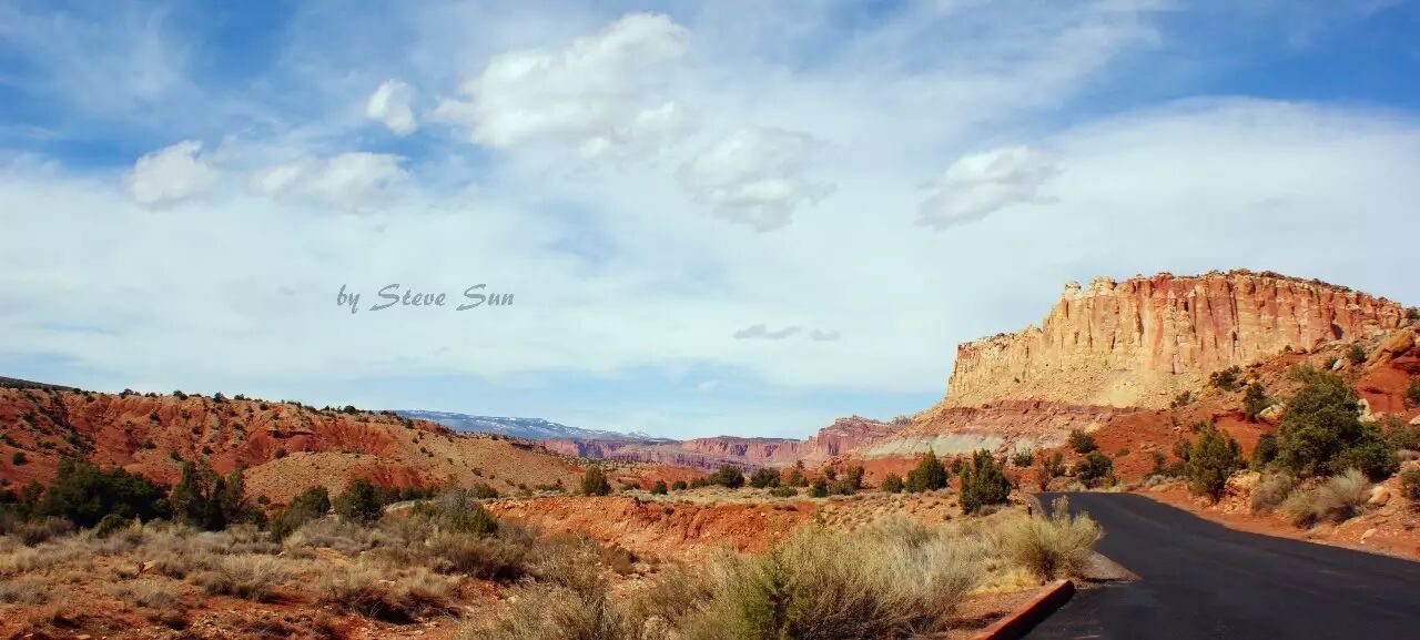 圆顶礁国家公园说大不大,说它小其实也没有那么小。犹他24号公路(UT-24)横穿公园,这也是连接布莱斯峡谷与拱门、峡谷地路线中的一条。鉴于上述的“圆顶”和“礁”在24号公路上都能看见,难怪很多游客为了把时间留给其他公园,就直接“车览”圆顶礁了...