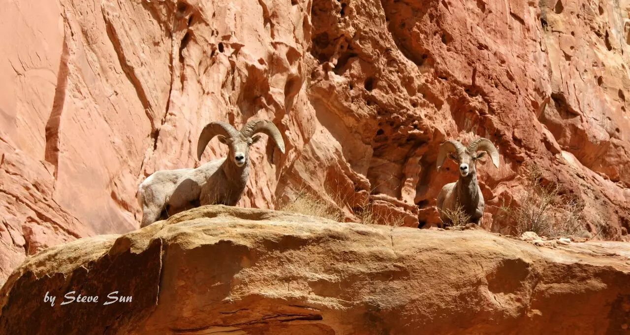 徒步Grand Wash时对视大角羊(bighorn sheep)