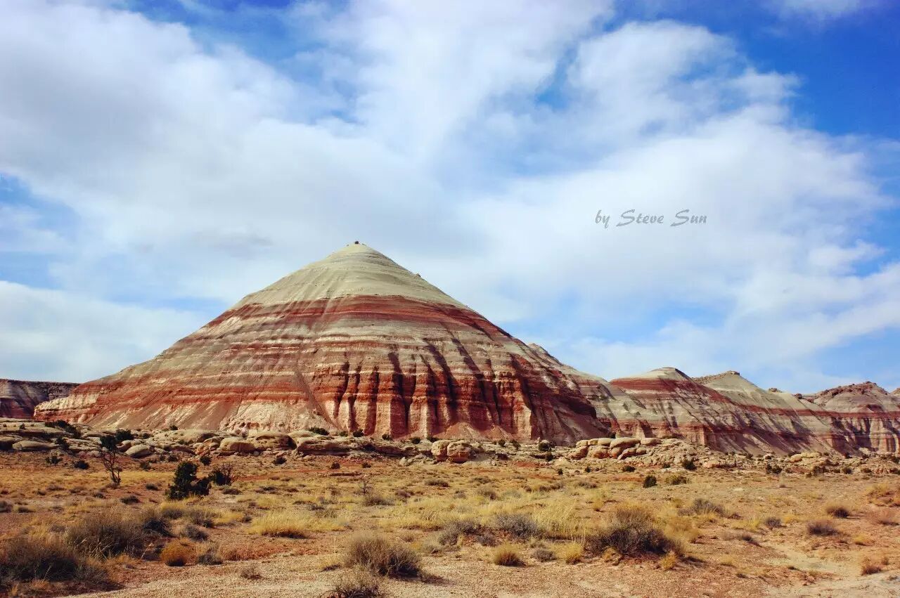 沿着24号路往东开出去,找到Caineville Wash Road,一路开就能到太阳神庙和月亮神庙。“一路开”说的轻巧,其实这一路可真不好开。因为这是一条土路,一路颠簸,小猴强烈建议高底盘车辆,最好还能加上四驱。如果遇上天气不好,路面泥泞,小伙伴们就歇歇吧,估计拖车钱也够一个月的生活费了。