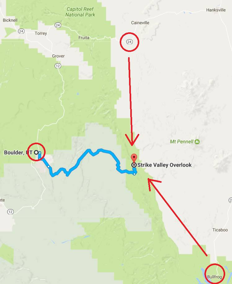 去Strike Valley Overlook的三条路线