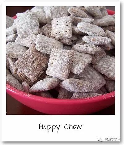 办公室上午10点的休息时间,同事C带来零食给大家分享,为庆祝家里领养了小狗。而这零食也有个应景的名字叫puppy chow 狗粮。这道小吃因形似狗干粮而得名,但其实是由早餐麦片混合巧克力,花生酱制成。方便好做很受大众欢迎,适合看电影,看球赛时品尝。曾哥来美国这些年已经吃了好多次,今天终于知道叫啥啦!