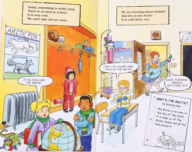 弗瑞丝老师的班级正准备着去往世界的尽头!他们要去看各种各样不同的极地生物。但当他们到达的时候,大大的惊喜正等待着他们……快来和弗瑞丝老师一起开启一段天寒地冻的实地考察,了解北极的各种动物吧。
