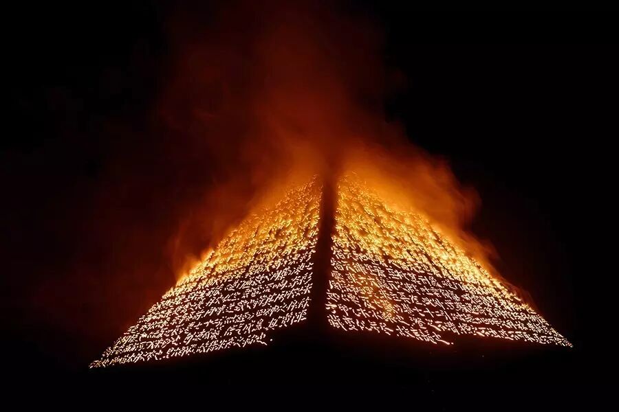 香,蕴含着凡对圣以及人类对自然的敬意,宋军生焚香去文字并非对仓颉不敬。正如王显顺所言,他只为追问文本以外的另一种存在;也如李铁军所言,他是汇天意之态,终达和合之髓。所以向仓颉致歉,是因为军生的艺术是在破解仓颉始设的文明的密码。他希望通过这样的破解,去探索人类文明的另一种生命形式。这就是宋军生意欲开启的光明,一片谁也未曾见过的光明。你尽可以像接平那样理解为返璞归真;可以像杨毅达那样看成化茧为蝶和生命重构;也可以像孙玺祥那样面对宋军生开启的这片光明,吟唱焚香化境,经史成空;你甚至可以沿着“贲”的字义指向,去寻找宋军生在既有的艺术方式里逃逸的方向。当然,你一定还有你自己的理解与感受,因为对艺术的观赏本身,其实也是一种创造。而我的理解是,军生心存对仓颉的歉意,却毅然用手中的香火去除文字,并由此点燃另一片未知的天地。