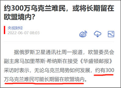 欧盟委员会副主席也坦言,无论乌克兰局势如何发展,都可能有300万乌克兰难民长期留在欧盟境内。