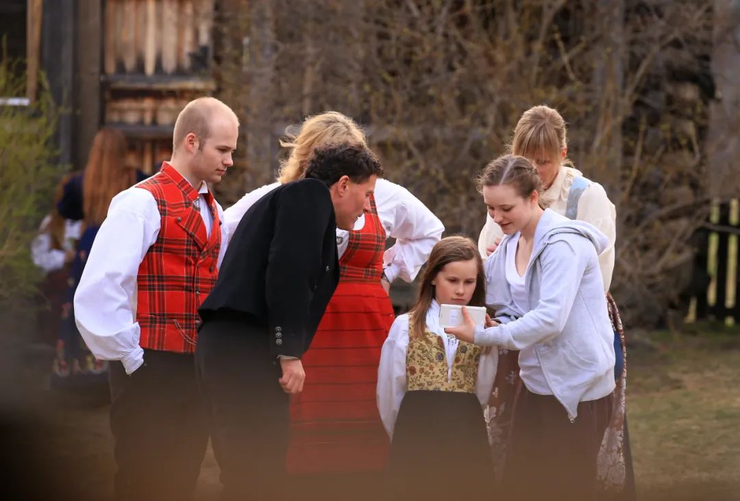 当天,一个来自奥斯陆的大家族,在这里举办家族聚会,大家都穿着当地的民族服装。看我拿着一个长焦镜头,就请我替他们拍照,于是我们一拍即合,他们给我当免费的模特,我提供他们免费的照片。