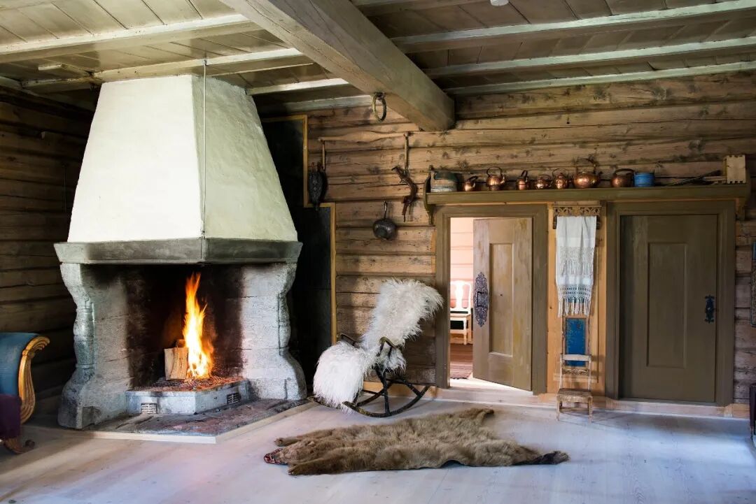 因为这里有着大片的森林与寒冷漫长的冬季,人们用木头造小屋,在屋顶上铺上土壤种上草,这些草皮可以吸收雨水,冬天时可以隔绝寒气,夏天时又可以阻挡暑热,既环保又实用。另外,草皮屋顶每平方米重250公斤,沉重的屋顶可以压实木头墙,增加房屋的重量,抵御强劲的北欧狂风。
