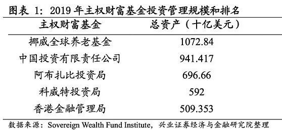 2019年的时候,市值就高达10720亿美元,而中国人口14亿,主权基金只有9410亿美元。与此同时,那些「头顶一块布,天下我最富」的中东产油国,主权基金规模却远不如挪威,阿布扎比投资局6960亿美元,科威特投资局5920亿美元。