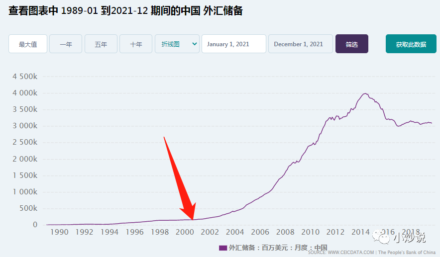 比GDP增加更加迅猛的,就是外汇储备。仅仅12年,就从2000亿美元干到了3.8万亿美元,占全球外储规模的1/3。