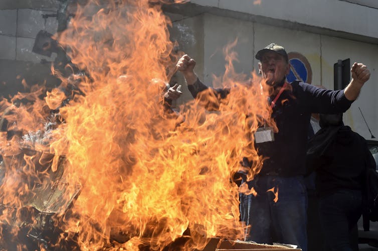 A protest outside a bank in Lebanon after the lira hit an all-time low against the US dollar in March 2023. Wael Hamzeh/EPA