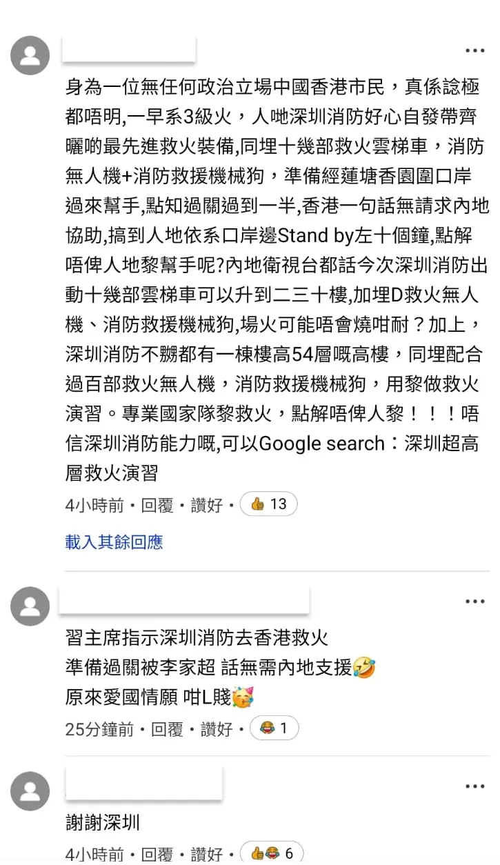 李家超沒有要求深圳幫忙,指「相信不久的時間後就可以全面控制火場」,但昨晚深圳隊伍集結口岸時是深夜,而當時大埔仍然火光熊熊,無數人被困,香港怎會「可以全面控制火場」當時,在現場救人的大埔消防隊伍已經筋疲力盡,極需援手,而深圳隊伍憑著經驗也清楚知道香港消防員的需要,所以他們才集結口岸候命!
