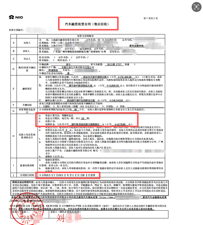 “无法过户,车机也无法变更,我的车主权益谁来保障?”更让金女士担忧的是该车存在的安全隐患,蔚来汽车客服明确告知,原车主可通过绑定的车机系统远程操控车辆行驶、开关车门,车内摄像头还能实时录音录像。同时,因融资车辆租金逾期,融资租赁公司有权随时锁车、锁电池,导致车辆核心的换电、保养服务完全无法使用。