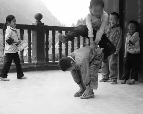 哦,对,还有跳山羊!大家齐排排蹲下,一个个翻过来。