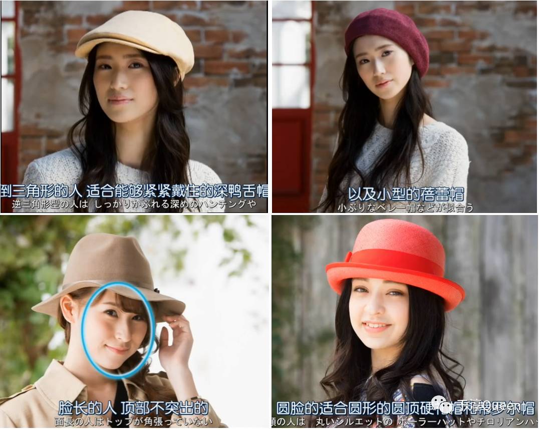 既然围巾遮丑路线行不通,还是改为研究帽子吧。不同的脸型适合不同的帽子,还是先看教程,very简单: