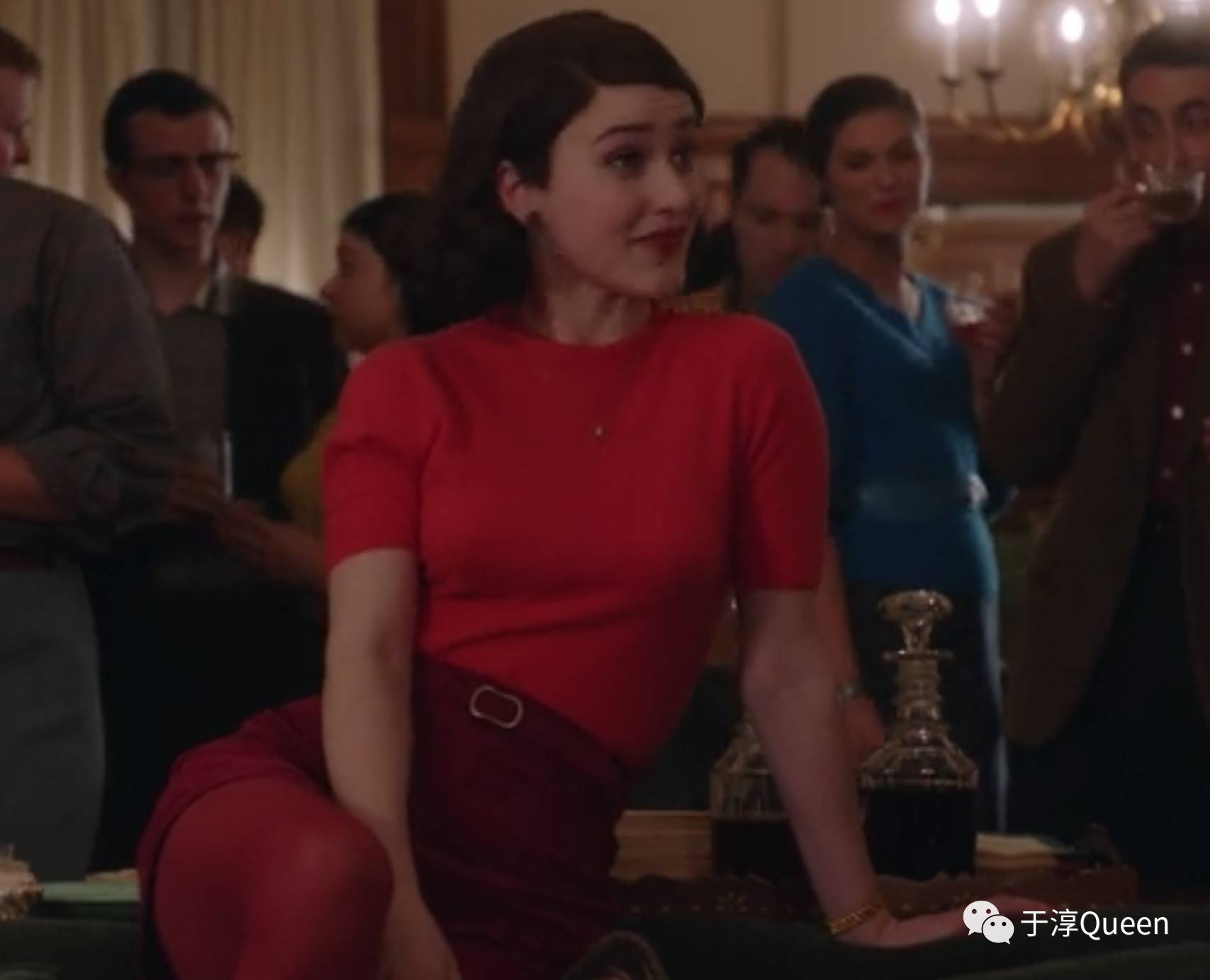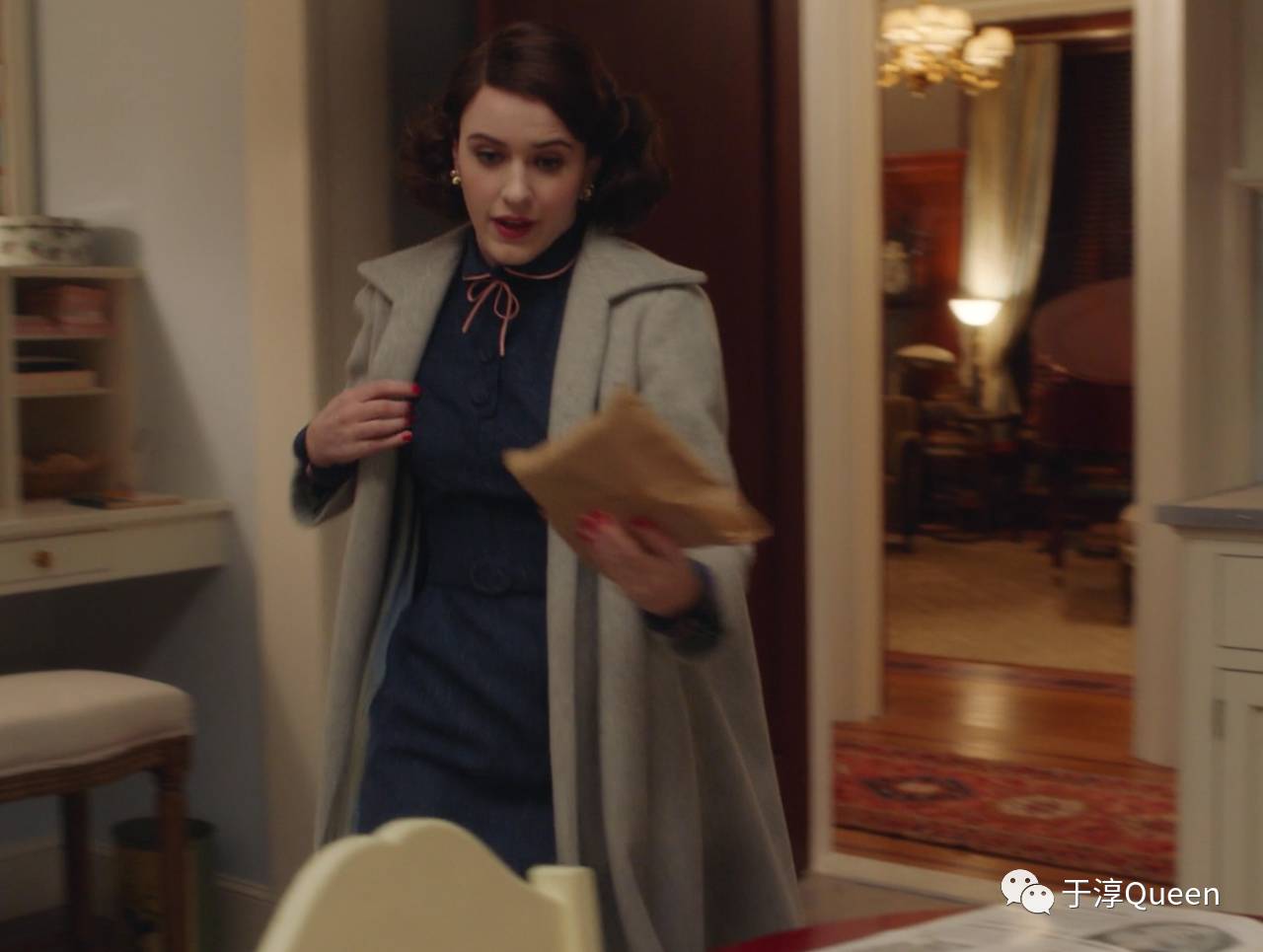 穿着这件黑色开衫的时候,米琪还是“丈夫背后的女人”,为了支持丈夫的喜剧梦想,跟着丈夫去俱乐部。她小心翼翼地掩盖着自己的光芒,这一身虽然比较沉闷,还是搭配了心机的戴了彩色发带。
