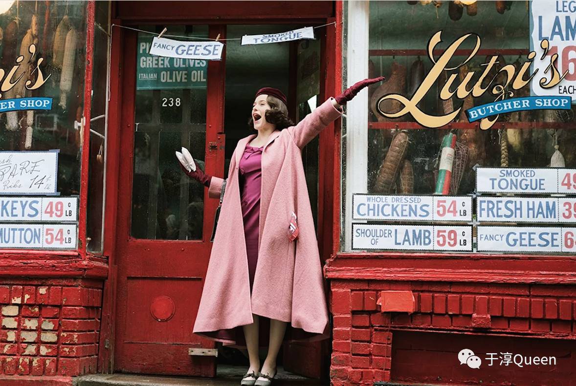 故事的起初,她还是一个一脸满足的小贵妇,去店里买块肉也穿得好像要参加时装周。紫红色连衣裙+橡皮粉色外套+天鹅绒帽子+手套成为本剧的经典形象,意气风发挥斥方遒。