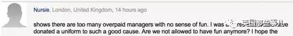 “真是太多的高管毫无幽默感了。我自己就是一名护士,我愿意捐出我的制服给这么棒的活动。所以我们以后是不能开任何玩笑了吗?”