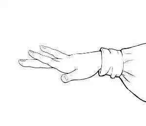 拇指抵掐无名指根节内侧,其余四指屈拢收于掌心。