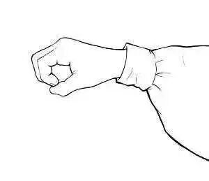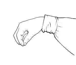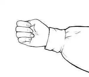 拇指压在食指指端上,其余四指并拢弯曲,虎口撑圆。