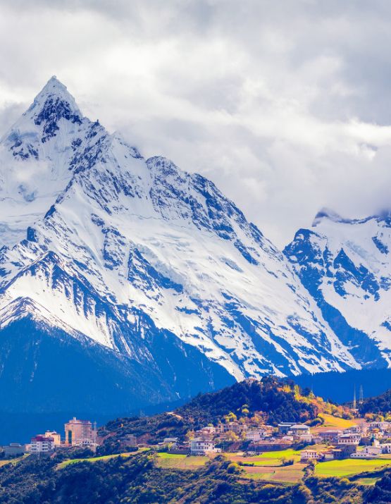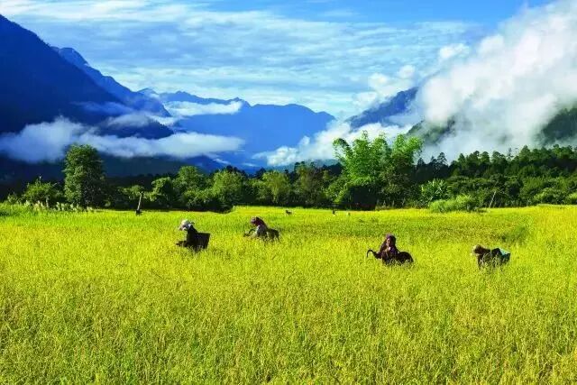 等到水稻成熟,金黄色的稻田与远处的雪山遥相辉映,更是增添无限情趣!