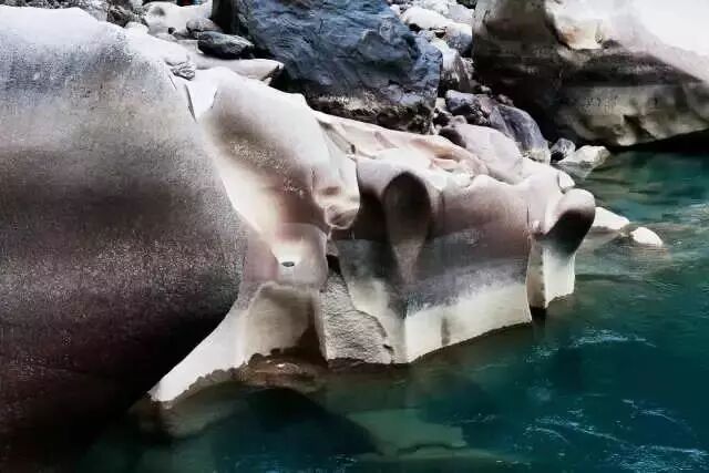 随着季节的变化,流经水磨岩的河水颜色也会产生颜色变化。或蓝或绿,非常神奇。