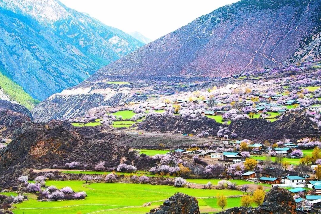 察隅县海拔高差悬殊,即使在下着鹅毛大雪的季节,亦有桃花遍野的景观。