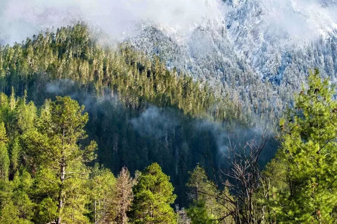 穿越阿扎冰川,底下是绿意盎然的慈巴沟,植被茂密,水流淙淙,让人有从冬季一下子跨越到春夏的错觉!