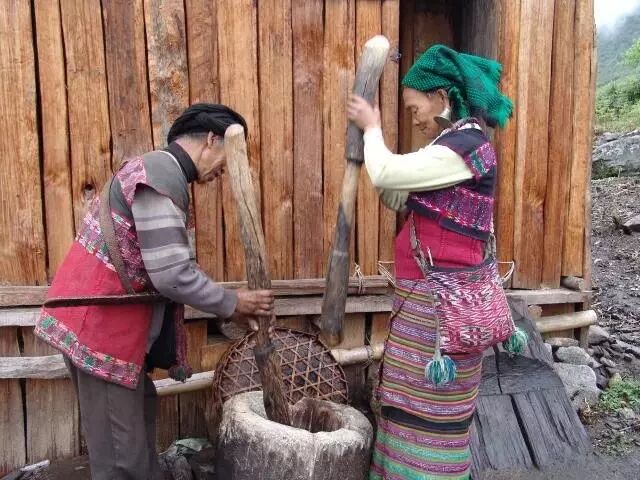 僜人部落里,客人来时会制作特色手抓饭。饭倒在竹编筛子里,混进生姜、韭菜和小猪肉,用右手的三个手指抓着吃。