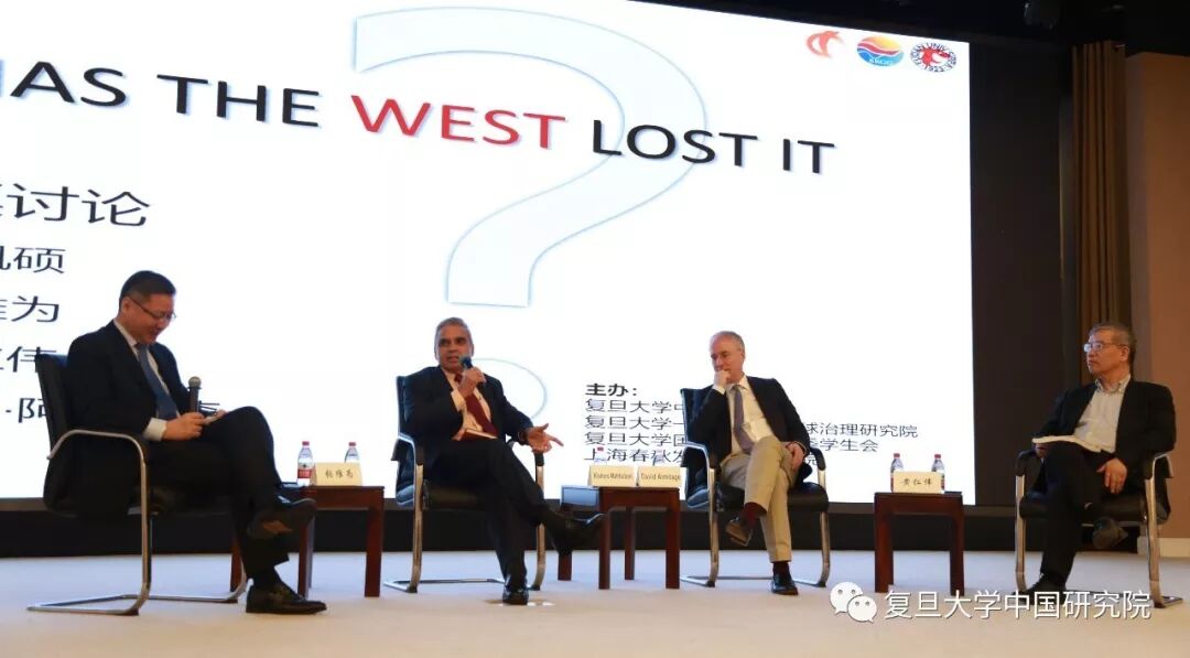 5月23日,新加坡国立大学公共关系教授、前外交官马凯硕在复旦大学光华楼吴文政讲堂进行了一场讲座,复旦大学张维为教授、黄仁伟教授、哈佛大学大卫·阿米蒂奇教授作为评议嘉宾参加了活动。本场讲座由复旦大学中国研究院、复旦大学一带一路及全球治理研究院、上海春秋发展战略研究院和复旦大学国务学院联合举办,规模空前。