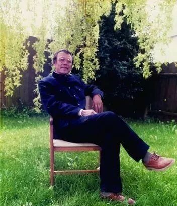 知道我是为出国来道别的,他送我一张他喜欢的照片留念。那是他在西雅图当访问学者时照的,像是初春或初夏时节,柳枝飘落在他的身后,他穿着那件我们熟悉的湛蓝色中山装,微笑地侧身坐着,翘起脚,一副神采飞扬的样子。