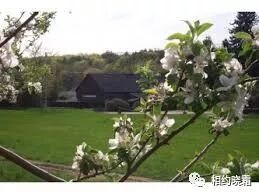 在一排果树前停下,旁边还有一个小的爬梯,像果树那样高。看得出来,刚才汤先生仿佛就在这里工作过。他解释这里有苹果树、桃树,梨树。这些果树都开花了,那粉红色白色的花儿真是惹人喜爱,可是我们都分不清是什么花,什么树。