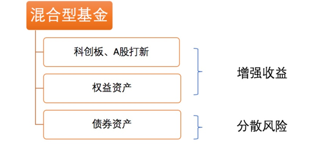 散户的网上申购方式,其实是新股申购中的底层,因此许多人开始借用基金的形式来争取更多的利益。打新基金顾名思义是以新股申购为主要目的,赚取上市后上涨价差的基金。打新基金其实并不是一种严格的股票分类,只是因为一些基金内包含打新股的内容,而被大众称为打新基金。打新基金可以是股票基金、指数基金、混合型基金等。一般来说,为了防止股票波动可能带来的伤害,打新基金通常会在底层配置一些固定收益产品来提供一些稳定现金流。甚至在2012年之前,有一些债券基金是专门打新股的,名为一级债基,但现在一级债基已经没有资格参与新股申购。此外,由于参与打新会对机构投资人有一定持股要求,因此打新基金内也会持有一些其他股票。综合来说,打新基金一般都为“混合基金”,同时包含债券、一般股票和新股。灵活配置型基金一般为股票型基金,加上打新策略,再加上融出资金,甚至加上一些对冲策略的配置。另一种混合型基金一般为股票底仓,加上打新策略,再加上债券的债基方式。