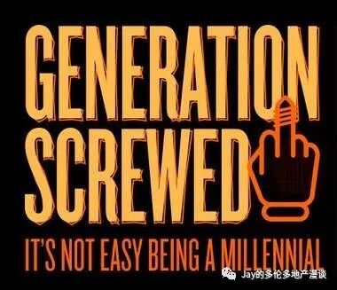 不同于德国,瑞士这样的欧洲国家,北美的社会价值体系里对房屋所有权的认可更类似亚洲,有属于自己的物业是“成人”,“成功”,“自给自足”和“尊严”的象征。加拿大的80后,90后被称为“千禧一代” ,也叫做 Generation Y(80-94年之间出生)这一代人在多伦多高房价或高房租的双重围堵之中,活得并不比国内的80后轻松。很多刚刚走出校园的学生,身负巨额学生贷款(平均约2万6到2万8),住房成本又侵蚀掉另外一大部分收入,让他们在财务上踉踉跄跄地跛脚前行。媒体戏称他们:Generation Screwed (被毁掉的一代)