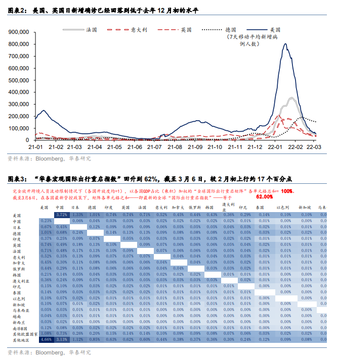 截至3月初,欧美主要发达国家疫情已经大幅缓和。疫情对欧美主要经济体影响的高点已过,欧美国家经济及人员跨境流动正在全面重启。